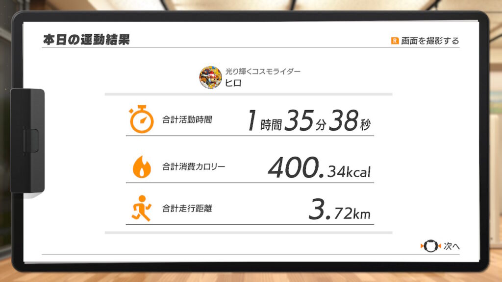 その後、数日程度ゲームから離れて様子を見つつ、リングフィットアドベンチャーに完全に飽きてしまうぐらいなら、リングフィットアドベンチャーから離れて、ポケモンgoをきっかけに始めたウォーキングを再開することも考えました。